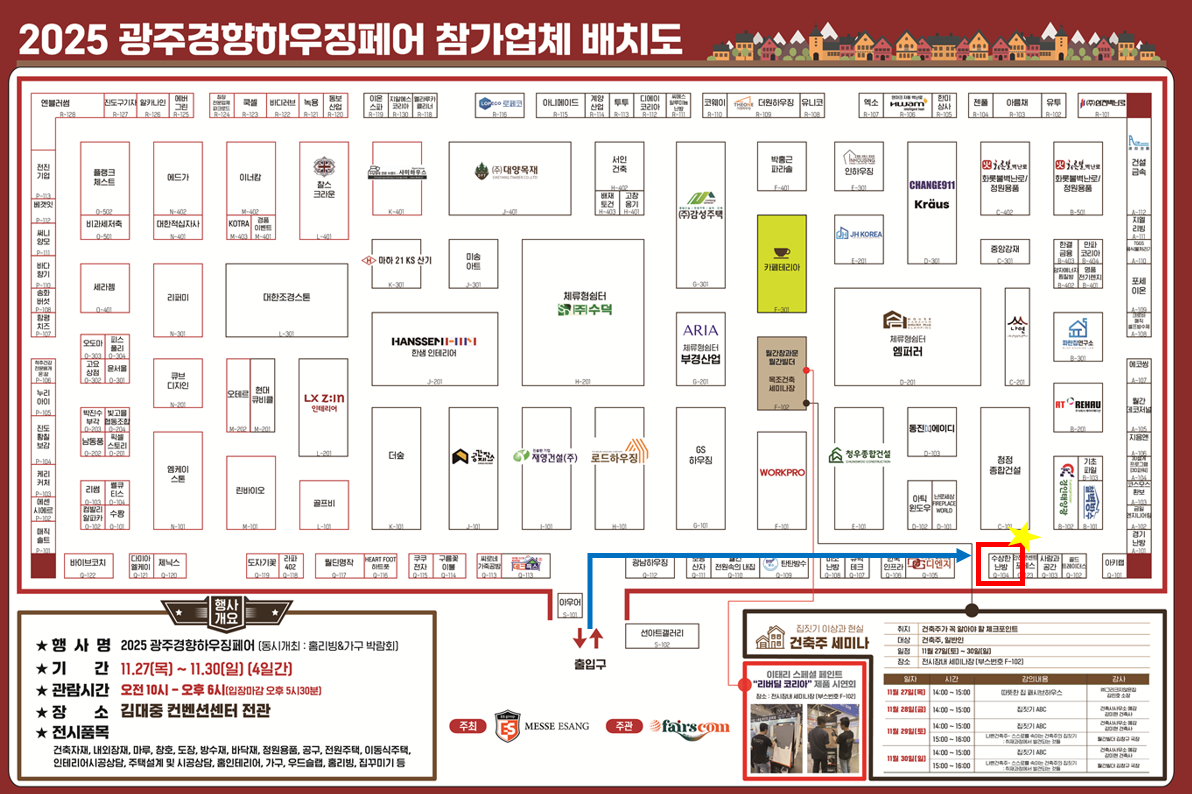 2025 광주경향하우징페어 참가 안내 <2025.11.27(목) ~ 30(일) > 페이지 정보 작성일 25-11-25 13:27 본문 2025.11.27(목) ~ 30(일)광주 김대중컨벤션센터에서 개최되는 광주경향하우징페어에 수상한난방이 참여합니다. 장소 : 광주광역시 서구 상무누리로 30 김대중컨벤션센터 목록보기