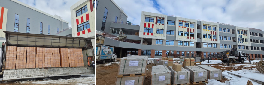 시공 자재가 차량 가득가득 운동장에도 가득가득