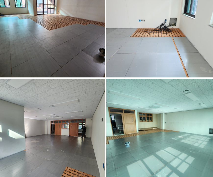 EPP보드 시공이 마무리된 교실들은 열을 바닥 전체를 골고루 전달해주는